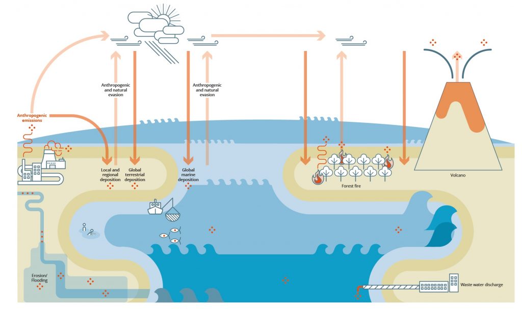 Col tempo si è poi scoperto che i vapori di mercurio possono essere rilasciati in atmosfera, oltre che dal suo impiego nelle attività antropiche (artigianato, industrie, inceneritori di rifiuti, etc), anche da specifiche sorgenti naturali (Figura 2).