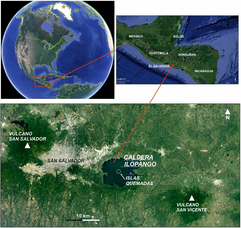 Ilopango è un vulcano caratterizzato da una grande caldera centrale, del diametro di circa 10 chilometri, originatasi 1.8 milioni di anni fa a seguito di forti eruzioni esplosive (Figura 2). Fa parte dell’Arco Vulcanico di El Salvador che, con un totale di 21 vulcani, rappresenta uno dei segmenti più attivi dell’Arco Vulcanico dell’America Centrale.