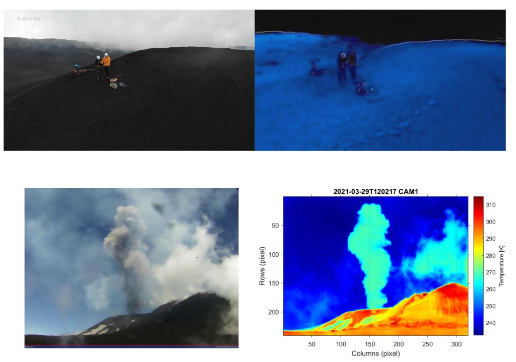 Con noi ci sono i droni ormai diventati uno strumento indispensabile per le attività svolte dal Laboratorio di Cartografia. Mentre io (Emanuela), Massimo e Tullio ci troviamo con i droni sul SEC , sulle sue molteplici bocche, Stefano e Lorenzo testano una nuova camera VIS-TIR per misure nell’infrarosso termico e nel visibile per stimare il flusso di SO2 emesso dall’Etna .