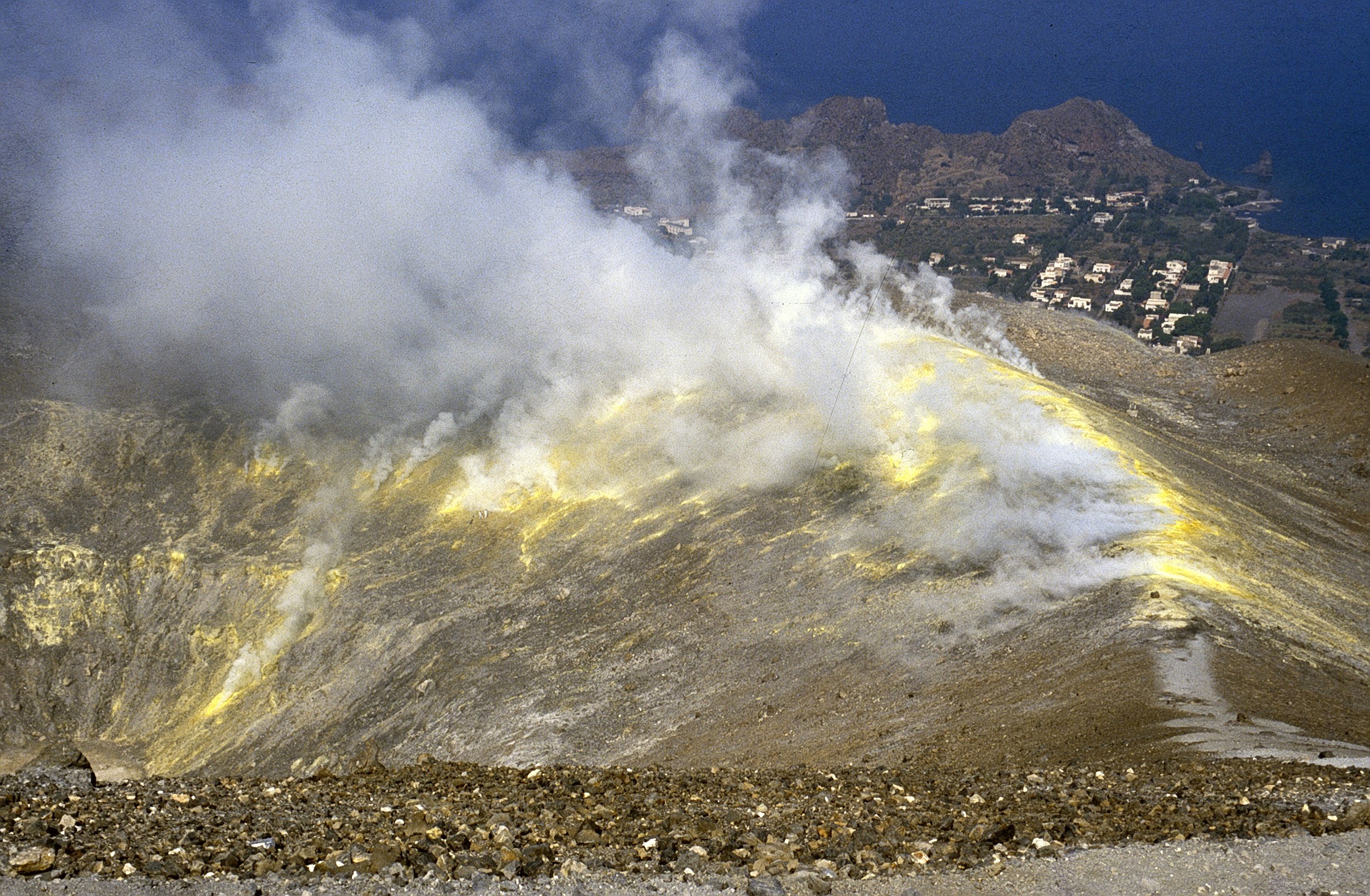 Tra il 1940 e l’inizio degli anni ’70, le attività di emissione dal cratere de La Fossa, rimasero deboli. Una nuova fase di riscaldamento delle fumarole del cratere ebbe inizio alla fine del 1977 e subì una serie di fluttuazioni, associate a variazioni significative del contributo di “gas magmatici”, ovvero quelli direttamente prodotti dal degassamento del magma (CO2, SO2, H2S). Nel febbraio 1980 venne misurata una temperatura relativamente elevata (315 °C), ma nel corso di quell’anno e fino al gennaio 1984 i geochimici osservarono valori di temperatura in calo e solo lievi cambiamenti nella composizione chimica dei fluidi emessi. Da allora ad oggi, i dati raccolti dalle reti di sorveglianza identificano diverse fasi di incremento dell’attività fumarolica. La più lunga e problematica è stata sicuramente quella compresa fra il 1987 e il 1993.