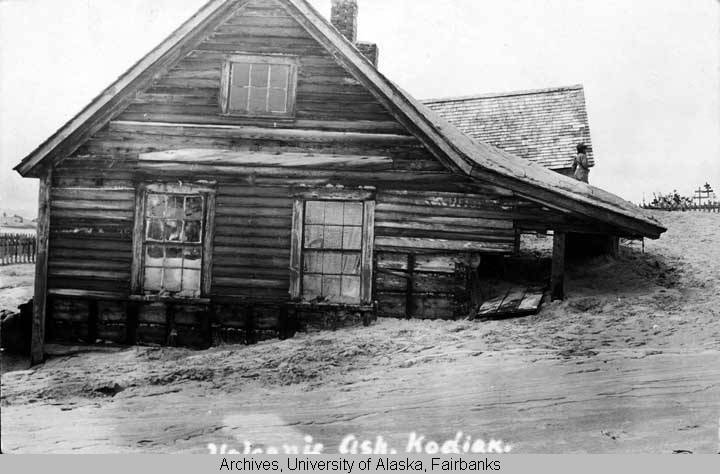 Sull’isola di Kodiak, distante circa 160 km dalla bocca eruttiva, l’oscurità fu così totale che una lanterna tenuta ad un braccio di distanza era a malapena visibile. I depositi di cenere vulcanica, spessi fino a 30 cm, fecero crollare i tetti degli edifici, mentre valanghe di fango e cenere provenienti dalle pendici delle colline vicine distrussero diverse strutture. Alcuni edifici presero fuoco a causa dei fulmini che si generarono nella nube eruttiva. L’aria divenne irrespirabile e l’acqua non potabile. Diversi villaggi circostanti subirono la stessa sorte e furono abbandonati per sempre (Figura 3).