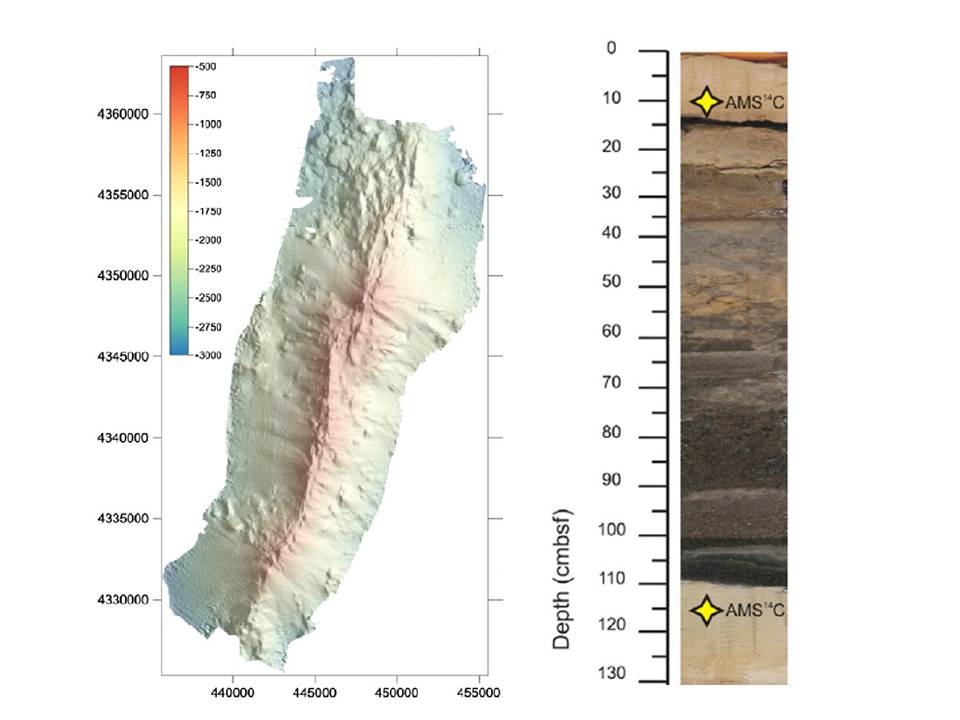 Ubicazione e altezza massima: Tirreno Meridionale, 39° 14.912N -14° 23.228’E; Marsili Seamount= – 508 m s.l.m.