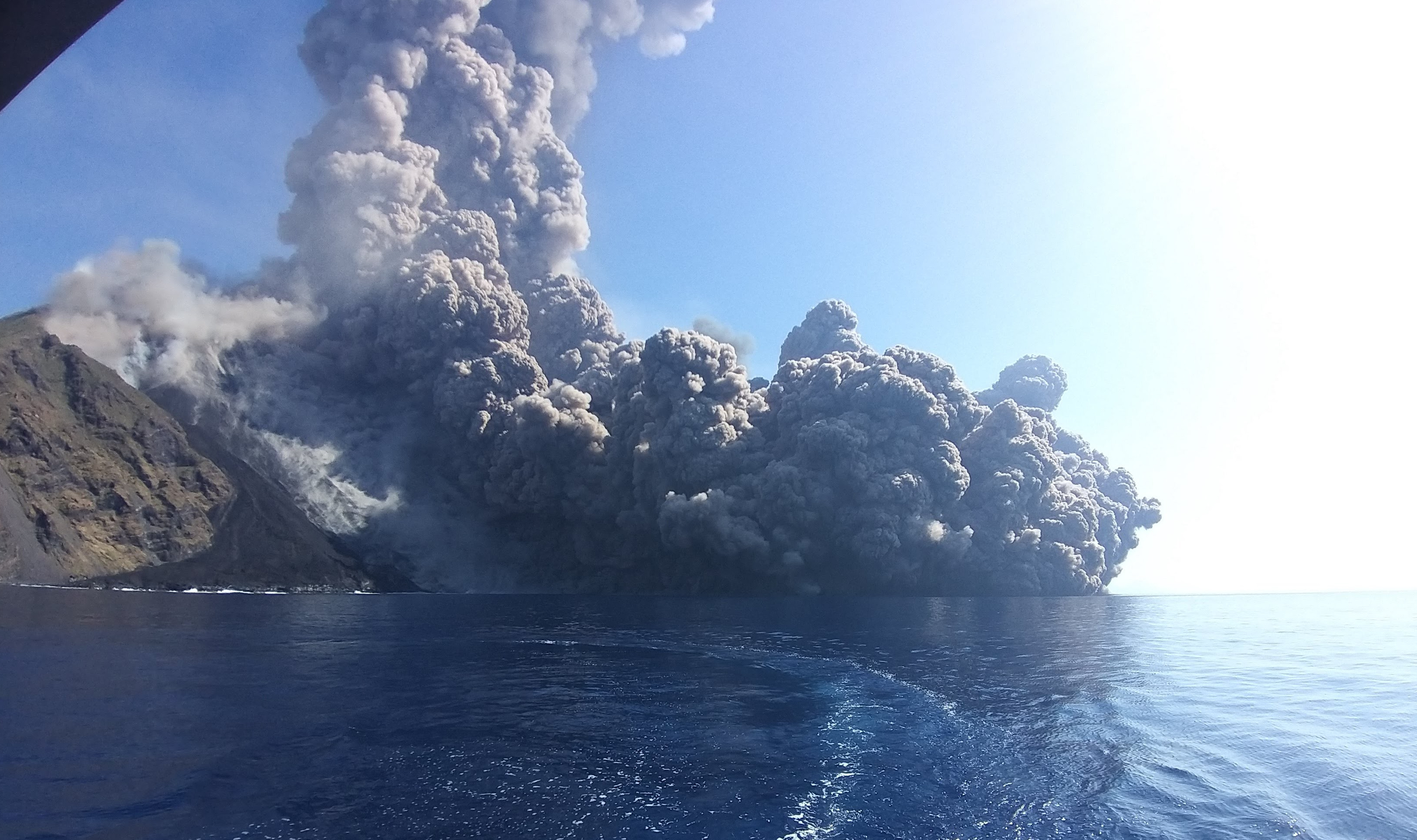 Lo Stromboli, uno dei pochi vulcani sulla Terra in attività “persistente”, è la più settentrionale delle sette Isole Eolie. Il suo edificio di forma conica, nella parte alta è caratterizzato dalla presenza di una piccola “terrazza craterica” posta a circa 700-750 m di quota, dove si trovano tre crateri attivi che da diversi decenni occupano l’estremità NE, il centro e la parte SO di questa terrazza. Immediatamente sopra l’area craterica si erge il Pizzo sopra la Fossa. Altro elemento distintivo di questo stratovulcano è la Sciara del Fuoco, una lieve e ripida depressione a forma di ferro di cavallo (o anfiteatro) che occupa il fianco NW del cono. La base dell’edificio vulcanico si trova a una profondità di circa 2000 metri sotto il l.m.